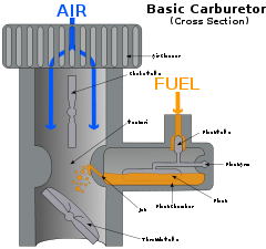 "Bộ chế hòa khí" hay "chế hòa khí hay bình xăng con là một dụng cụ dùng để trộn không khí với nhiên liệu theo một tỉ lệ thích hợp và cung cấp hỗn hợp này cho động cơ xăng, hoạt động theo nguyên tắc hoàn toàn cơ học". Bộ phận này hiện vẫn được sử dụng trong các động cơ nhỏ, động cơ cũ hay trong các ô tô đặc biệt như ô tô đua nhỏ.