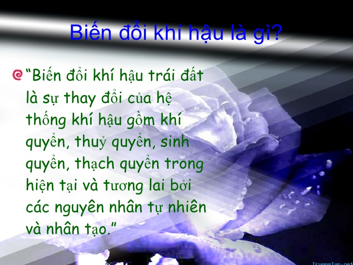 Kết Luận: "Climate Change " tiếng Anh là "Climate Change " là "thuật ngữ chung chỉ sự thay đổi, suy giảm của hệ thống khí hậu gồm có: khí quyển, thuỷ quyển, sinh quyển, thạch quyển" bởi các nguyên nhân xuất phát từ sự vận động của tự nhiên hoặc các tác nhân do chính con người gây ra. Climate Change có ảnh hưởng lớn tới đời sống, sinh hoạt, khả năng thích nghi của con người, xa hơn nữa là khả năng sinh tồn.
