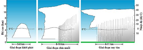 Hình 2: Các giai đoạn hình thành cơn giông