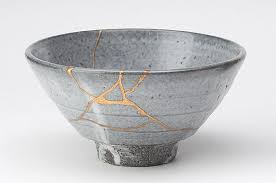 Kintsugi là một loại hình nghệ thuật thủ công truyền thống của Nhật Bản dùng để phục chế đồ gốm sứ. Những người thợ mài dũa những mảnh gốm hay sơn mài đã vỡ và ghép chúng lại với nhau bằng hỗn hợp loại “nhựa” bí truyền (resin) hoặc sơn mài trộn bột vàng, bạc hoặc bạch kim.