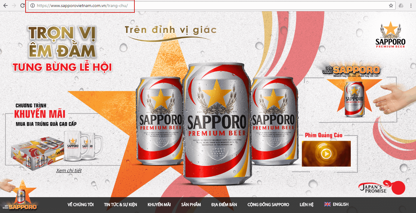 Lấy Sapporo làm ví dụ cụ thể. Chương trình khuyến mãi Trọn vị êm đằm – Từng bừng lễ hội của Sapporo chỉ kéo dài trong vòng 2,5 tháng từ 15/10/2016 đến hết ngày 31/1/2016. Vậy thì ngày 1/2/2016 khi bạn đăng nhập vào trang chủ website sapporovietnam.com.vn sẽ không còn thấy thông tin chương trình như hình trên nữa.