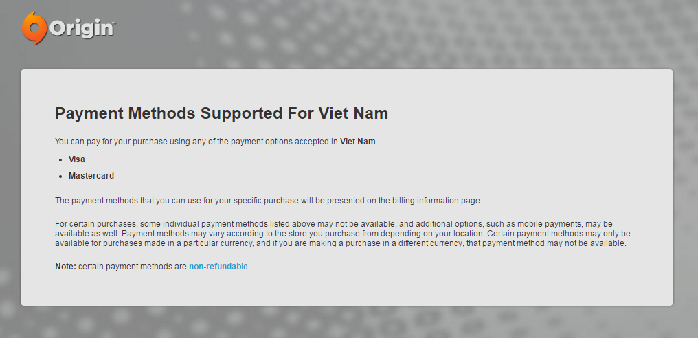 Ở Việt Nam để mua game trên Origin thì chỉ có những hình thức sau để bạn có thể thanh toán mua game. Như sau: