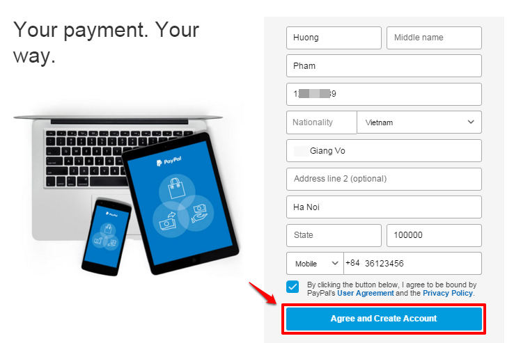 Hình 5: Đăng ký Paypal trực tuyến dễ dàng và thuận tiện.