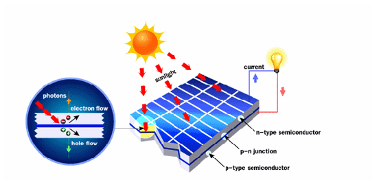 Hình 2: Pin mặt trời có sự chuyển dịch ánh sáng