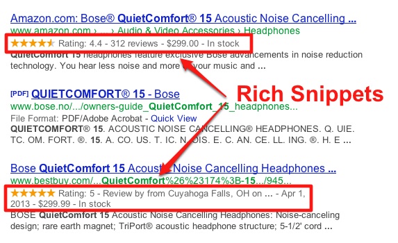 Như vậy, Rich Snippets có thể được hiểu là những thông tin quan trọng, đặc biệt của trang web nhằm giúp cho trang web đó trở nên quan trọng hơn, đặc biệt hơn khi hiển thị trên công cụ tìm kiếm. Về mặt bản chất, Rich Snippets là những đoạn code đặc biệt bên trong trang web giúp cho các máy tìm kiếm hiểu được nội dung của trang web. Vì thế những website có Rich Snippets sẽ hiển thị nổi bật hơn trên công cụ tìm kiếm và người tìm kiếm dễ bị thu hút, click vào website của bạn (tăng tỷ lệ CTR).