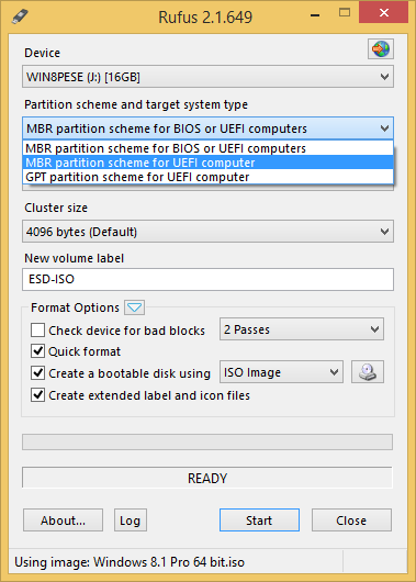 Bước 4: Ở bước này, bạn có 3 lựa chọn cho mục Partition scheme and target system type, cụ thể như sau: