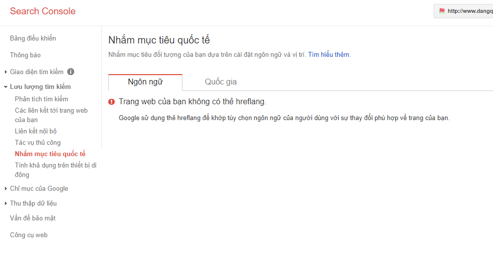 - Trong Webmaster Tool có hẳn một phần riêng mà Google yêu cầu bạn cần phải nhập thẻ Hreflang này, điều này chứng tỏ sự quan trọng của nó trong quá trình làm SEO Onpage.
