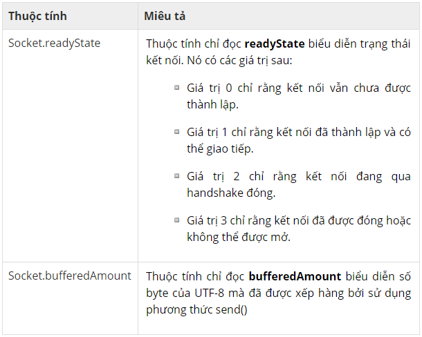 0.5 - Các thuộc tính của WebSocket là gì ?