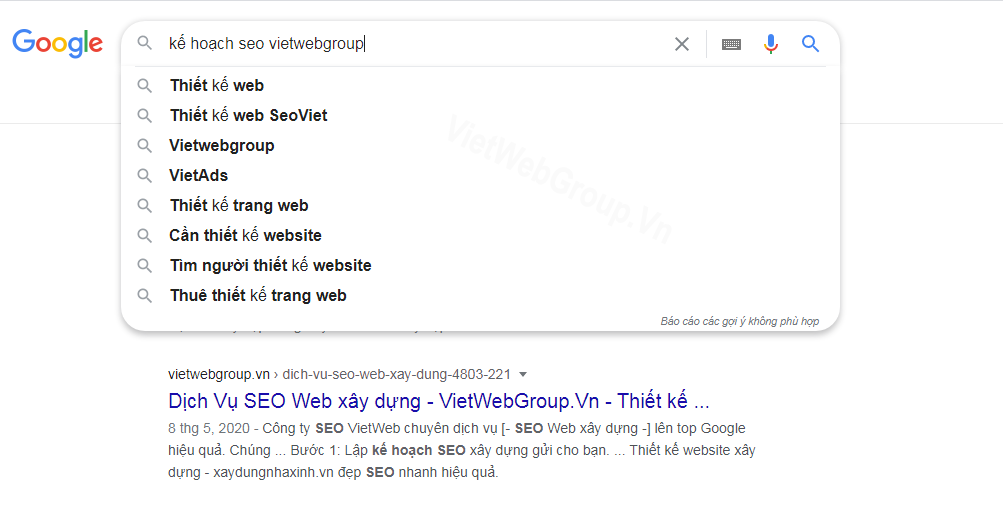 - Bạn nhập từ khóa vào ô tìm kiếm của Google và Google sẽ trả về danh sách các từ khóa liên quan (xem ảnh dưới đây)