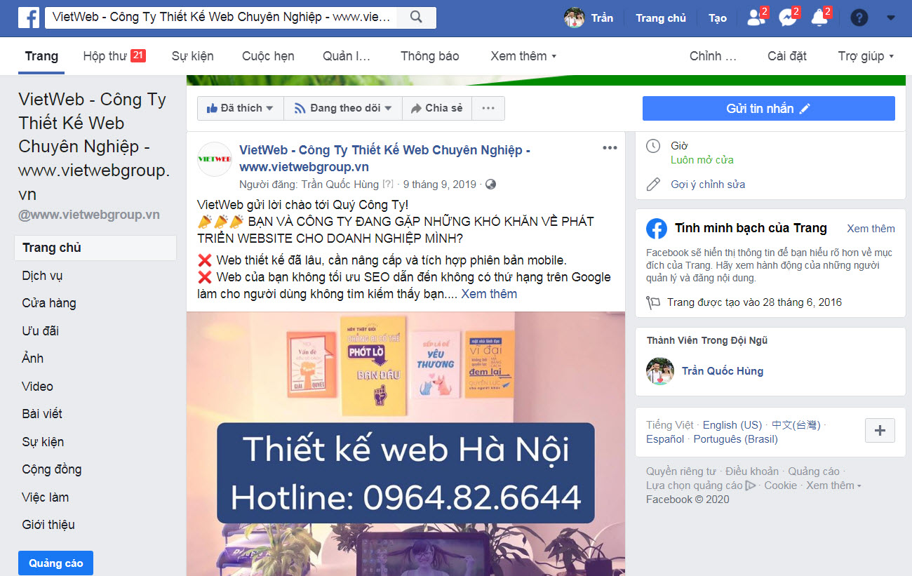Công ty VietWeb cung cấp dịch vụ quản trị Fanpage thuốc lá điện tử uy tín, chuyên nghiệp, hiệu quả. Kỹ thuật chúng tôi sẽ viết bài, tối ưu fanpage facebook, tăng nhận diện thương hiệu giúp doanh nghiệp bạn tiếp cận khách hàng hiệu quả.