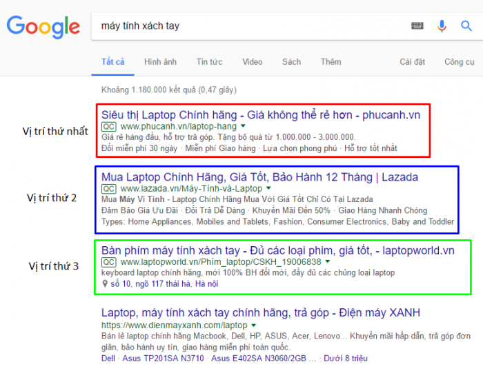 Sau mỗi truy vấn tìm kiếm, Google sẽ trả về hàng chục kết quả với 7 mẫu quảng cáo được hiển thị ở trang đầu tiên. Vậy làm sao để mẫu quảng cáo google của bạn hiển thị nổi bật để tạo sự chú ý cho khách hàng của mình click nhiều hơn vào quảng cáo ?