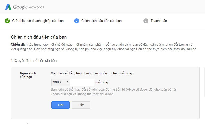 5.2 - Bước 1: Đặt ngân sách cho quảng cáo Google phù hợp với chiến dịch