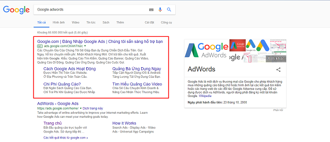 Google Adwords là chương trình quảng cáo trực tuyến của Google, người dùng sẽ phải mất chi phí trả Google để có thể được xuất hiện thứ hạng cao trên bộ máy tìm kiếm này. Còn nếu bạn không muốn mất phí thì bạn có thể sử dụng SEO Google, nhưng mà bạn sẽ mất rất nhiều thời gian và công sức có thể mất tới ít nhất 6 tháng, khi đó bạn sẽ dễ bị nản và thực chất SEO không phải là không mất phí bạn nhé.