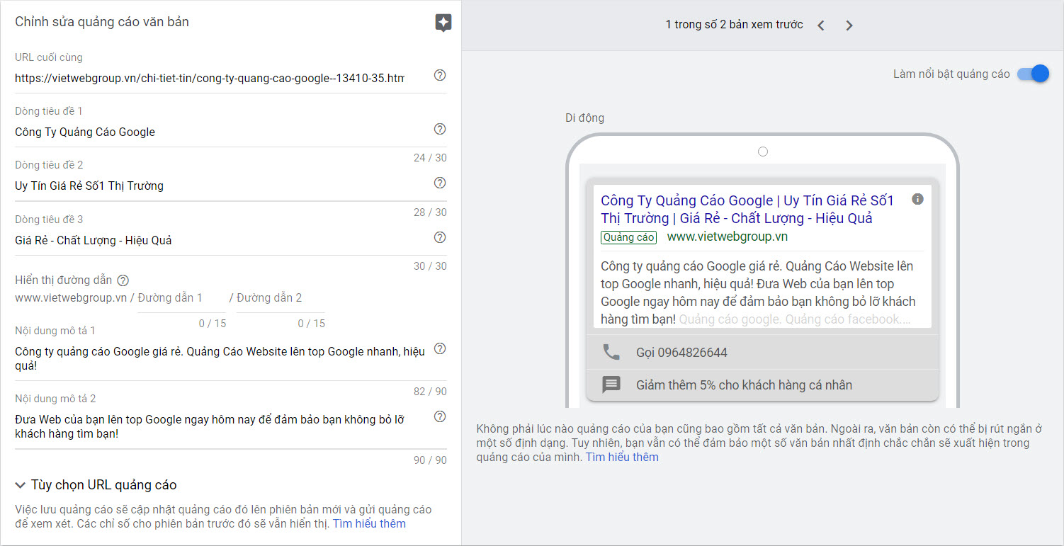 Công ty chúng tôi cung cấp các gói quảng cáo Google Adwords công ty xuất khẩu tối ưu hiệu quả theo nhu cầu của khách hàng. Hãy nhấc máy lên và liên hệ ngayvới chúng tôi để nhận báo giá chi tiết dịch vụ quảng cáo Google Adwords tối ưu hiệu quả.