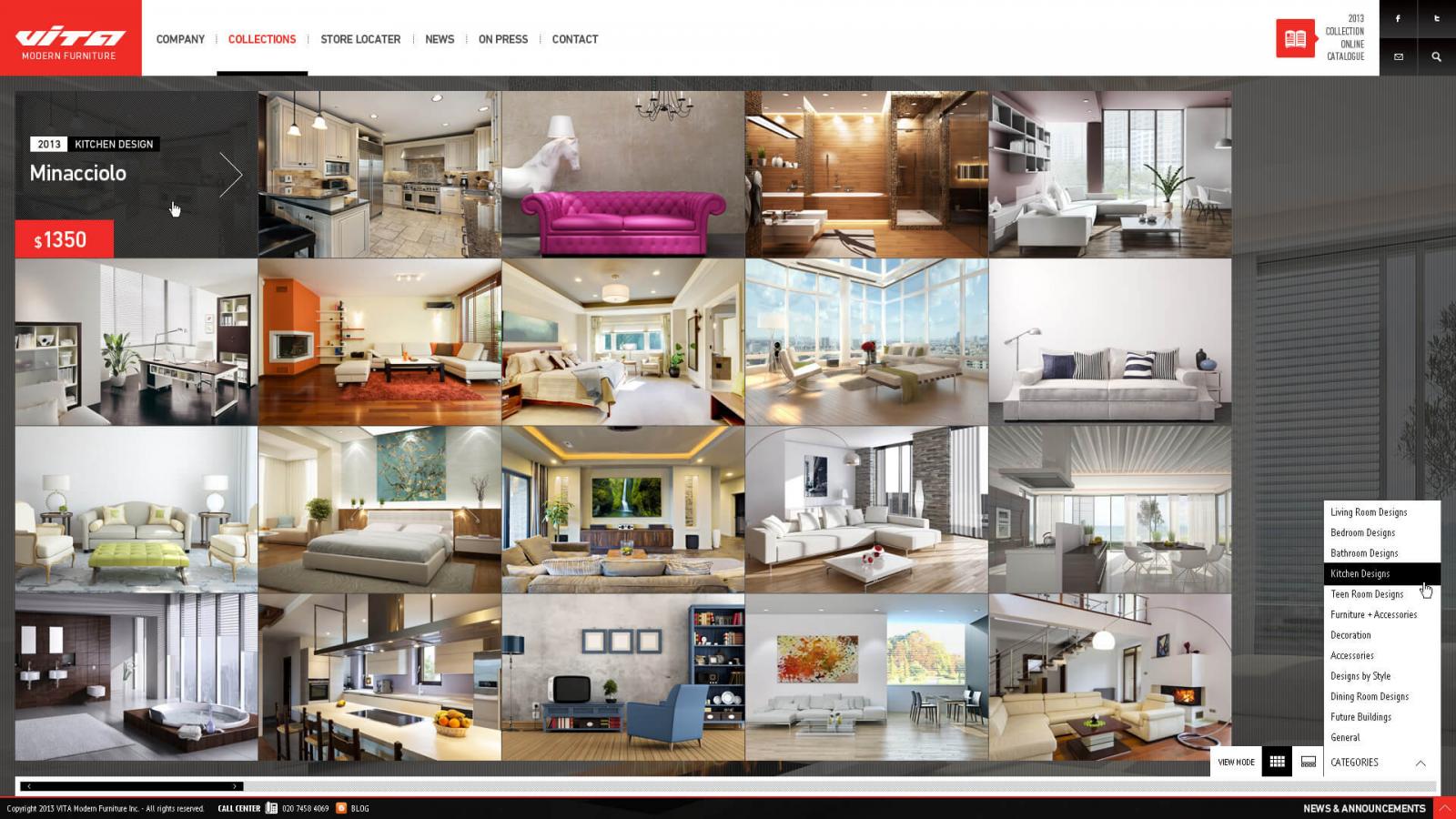 Thiết kế website nội thất chú trọng vào phần portfolio (dự án đã làm), đóng vai trò như một catalog online khi bạn gặp gỡ khách hàng và đối tác, cùng với việc tích hợp website responsive ( phiên bản điện thoại/tablet ) càng làm tăng độ ứng dụng và sự chuyên nghiệp của doanh nghiệp trong mắt khách hàng. Việc chuyền tay nhau 1 cuốn catalog lỗi thời chắc sẽ không ấn tượng bằng một cái click chuột hoặc chạm màn hình để nhìn thấy đầy đủ sản phẩm tại showroom.