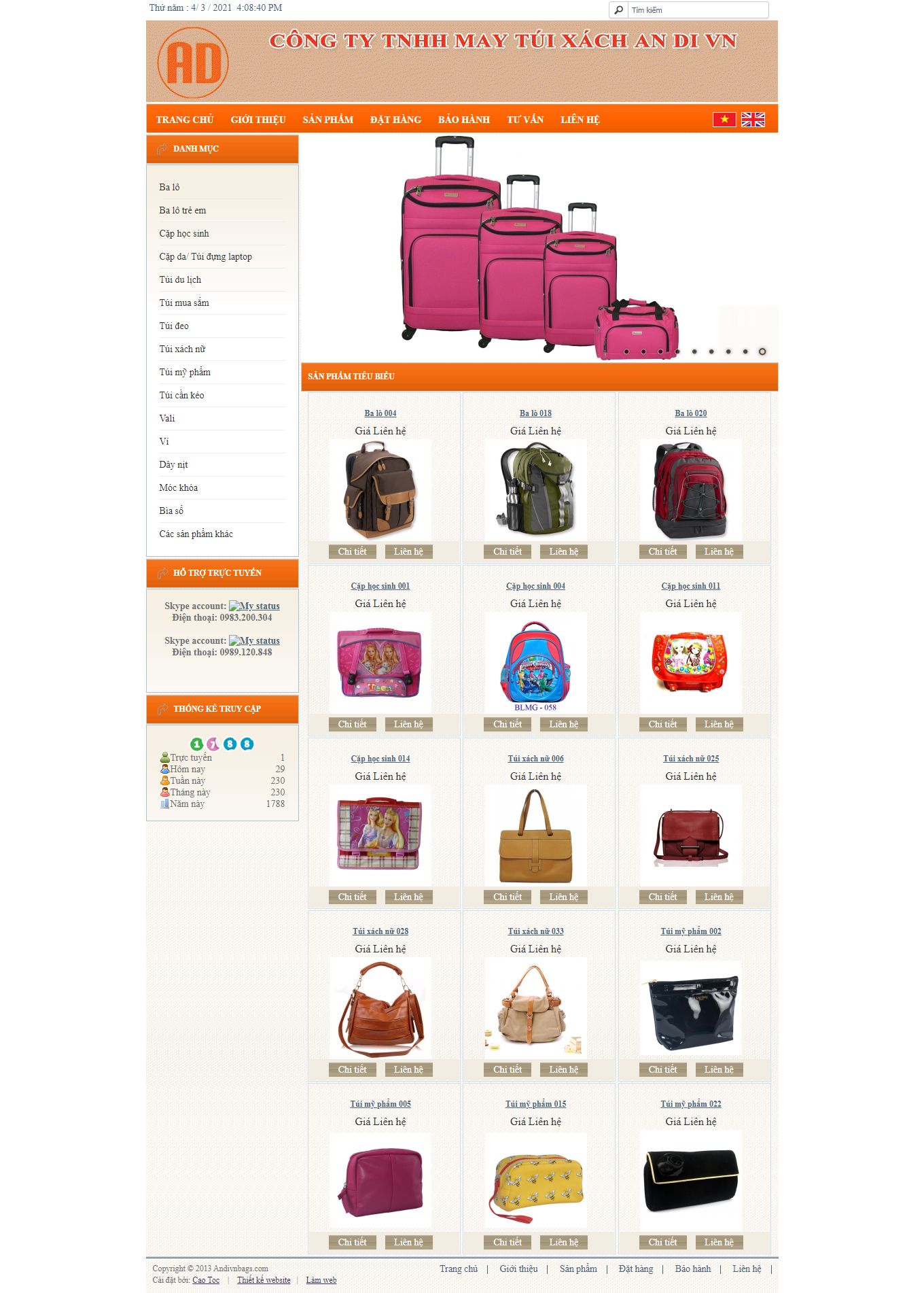 Website balo thời trang andivnbags đảm bảo hoạt động 100%, phục vụ 24/24 cho quảng cáo Google, Facebook công ty bạn.