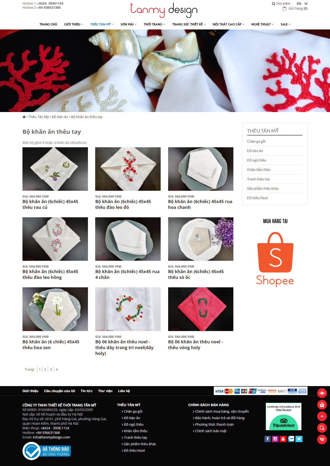 Đáp ứng được mọi nhu cầu của khách hàng trong việc thiết kế trang web thêu khăn tay tanmydesign.