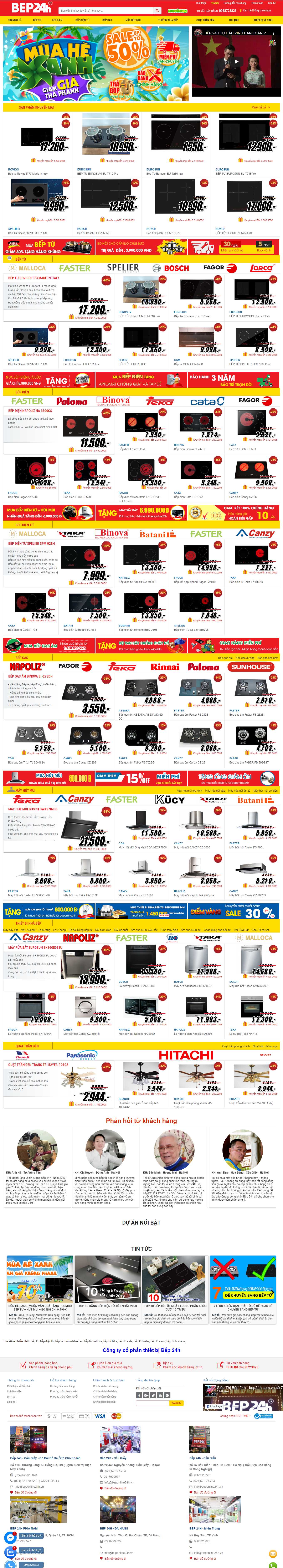 Website thiết bị nhà bếp cao cấp beponline24h có phiên bản Web Mobile hiển thị website trên điện thoại đẹp.