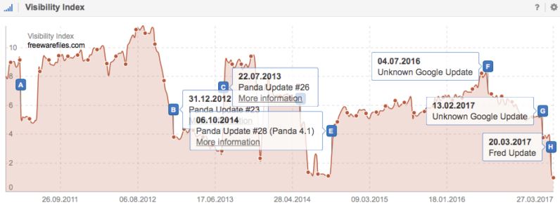 Biểu đồ này hiển thị thứ hạng trên Google cho freewarefiles.com trước khi cập nhật: