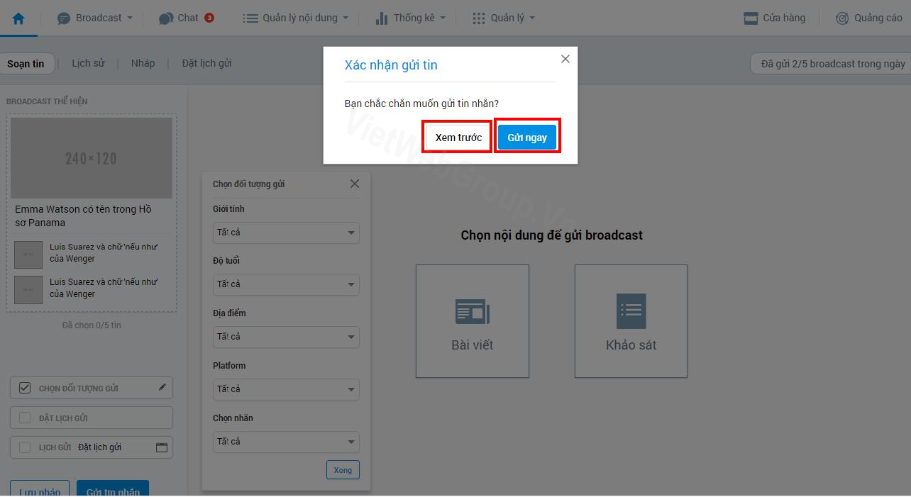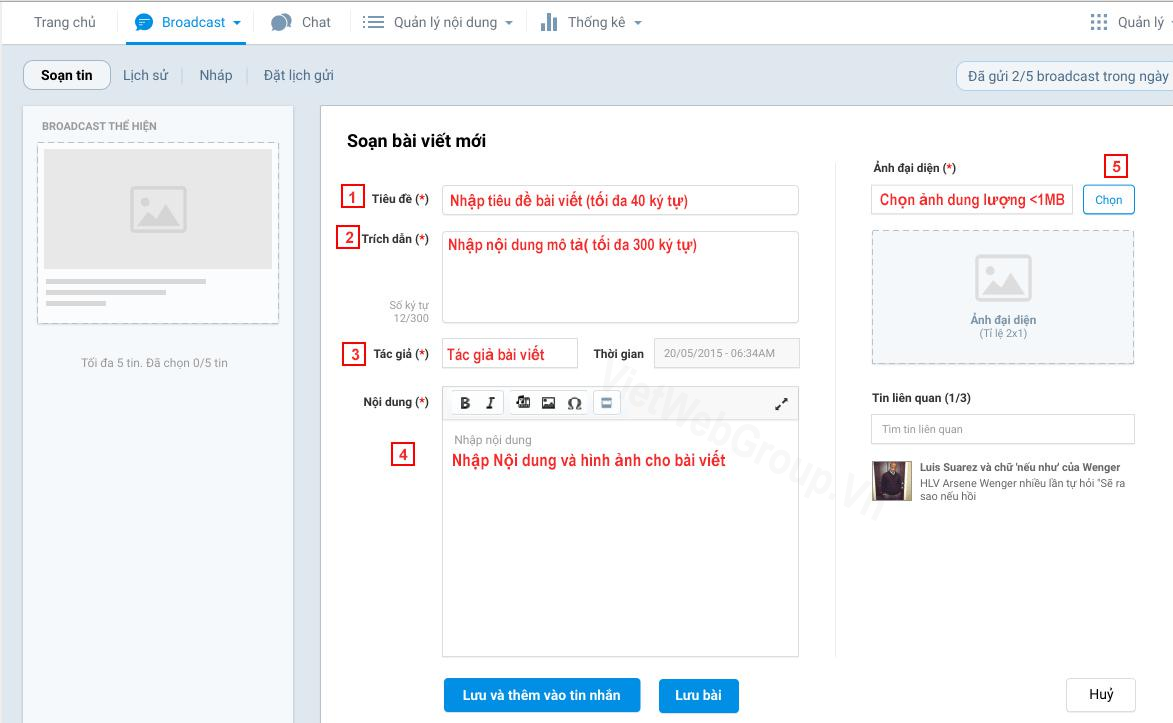 2 - Cách tạo bài viết và gửi tin nhắn Broadcast