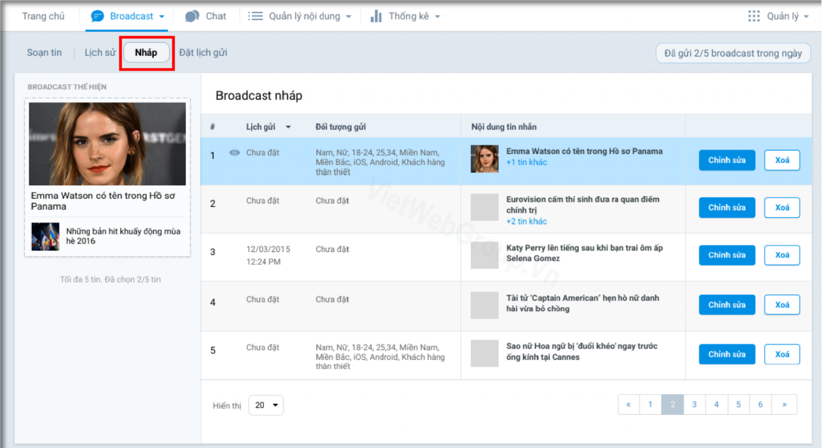 Nháp: Lưu những tin nhắn broadcast mà Admin đã lưu chưa gửi