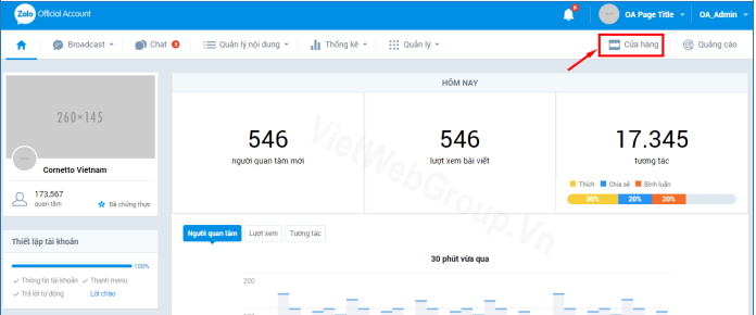 Như vậy VietWeb đã chia sẻ chi tiết cách tạo tài khoản Zalo Official Account và giới thiệu các tính năng, khu vực trong giao diện quản lý tài khoản OA nhằm hỗ trợ tối đa công tác bán hàng của bạn trở nên chuyên nghiệp trên zalo.
