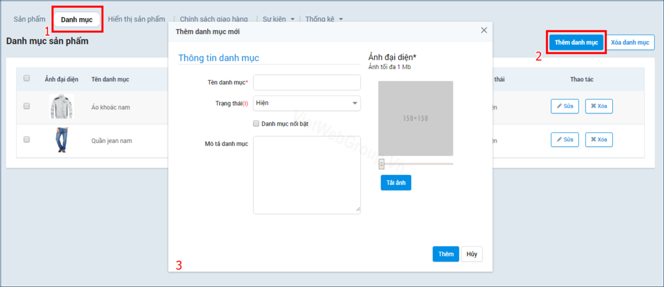 - Cách 1: chọn “danh mục” -> thêm danh mục -> nhập tên và thông tin danh mục cần tạo