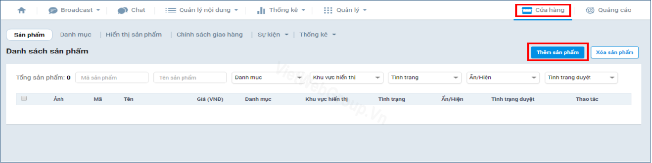 - Cách 2: chọn “sản phẩm” -> thêm sản phẩm