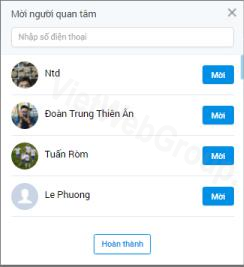 - Click chọn mời người quan tâm sẽ hiển thị danh sách bạn bè trên Zalo ( danh sách hiển thị là chưa từng được mời và chưa quan tâm OA này)