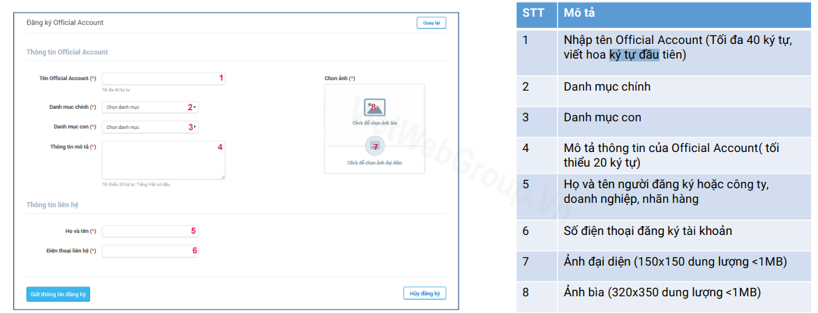 - Tên Official Account: được thay đổi và duyệt lại nếu OA dưới 200 người quan tâm.