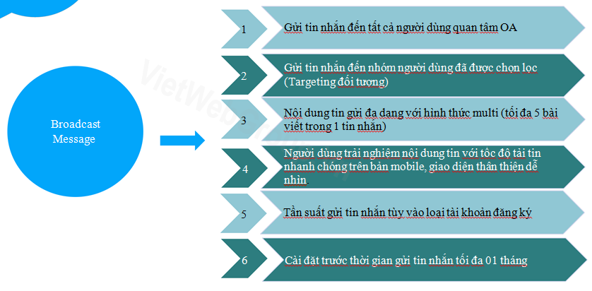 - Định dạng tin nhắn Broadcast: l à 1 bài viết hoặc nhiều bài viết ( tối đa 05 bài viết)